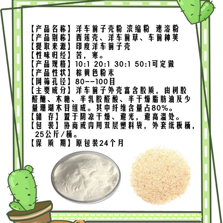 洋车前子壳浓缩粉 粉质疏松 水提工艺 100目 SC认证 膳食纤维粉 保健品